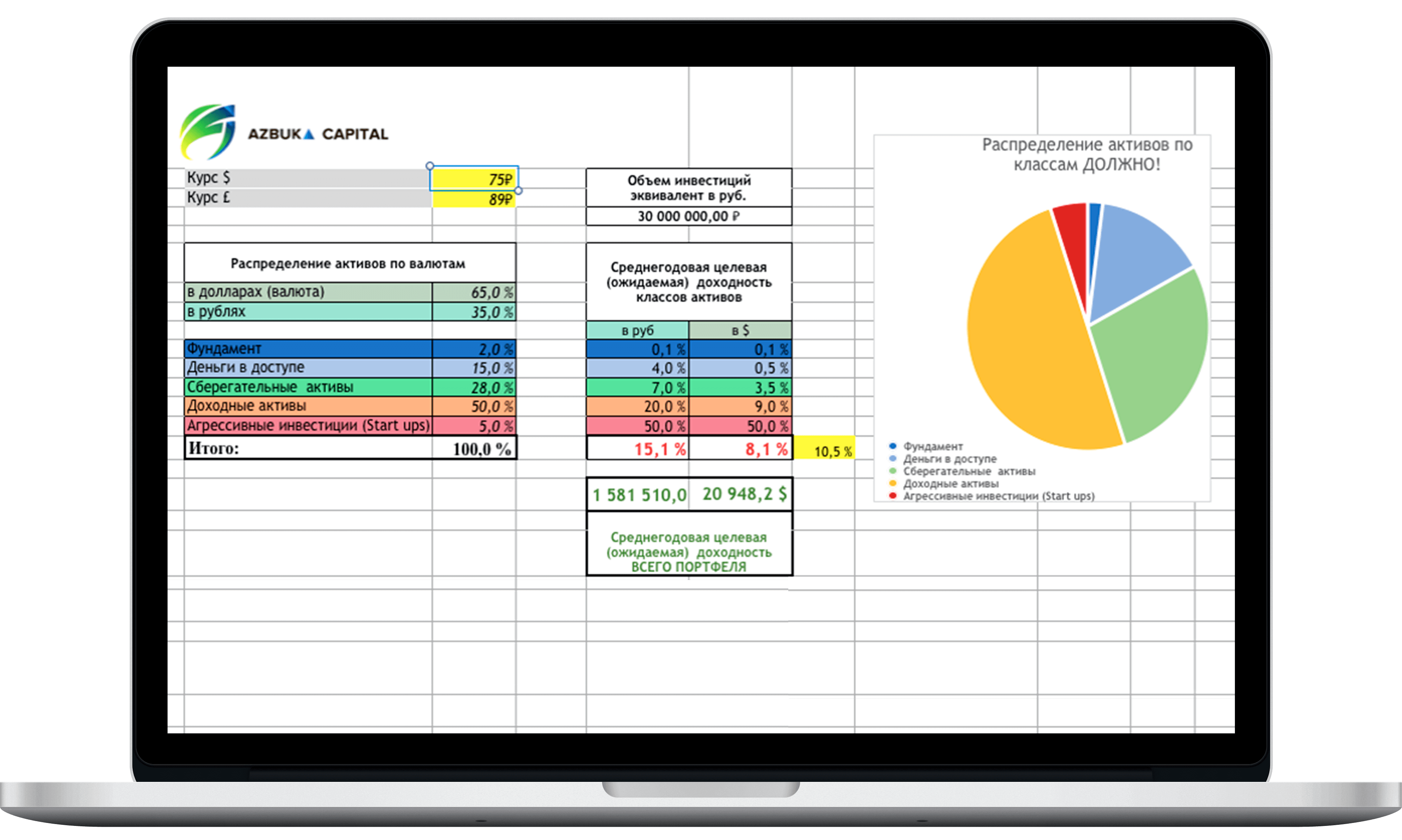 расчет индивидуального распределения по валютам и классам активов